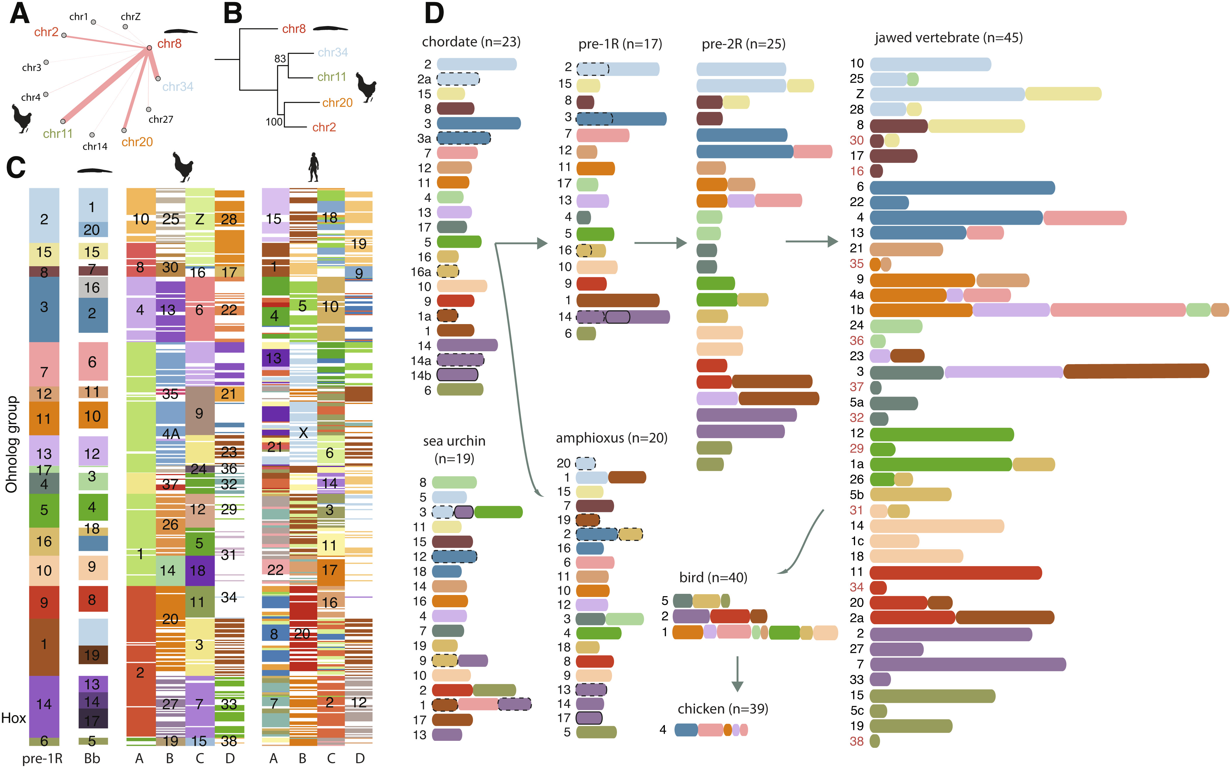 Chrohno is a brand-new database for exploring homologous genes of two species of amphioxus and eight species of vertebrates. It provided species orthologous genes and complete chicken genome ohnologs data constructed by the homologous chromosome method (Huang et al., 2023). The genomes of all selected species in this database were assembled by high-quality sequencing technology, and the selected vertebrates have undergone two rounds of whole genome duplication (2R WGD). You can use and download data such as orthologous genes, ohnologs, gene sequences, and gene trees of species in this database.